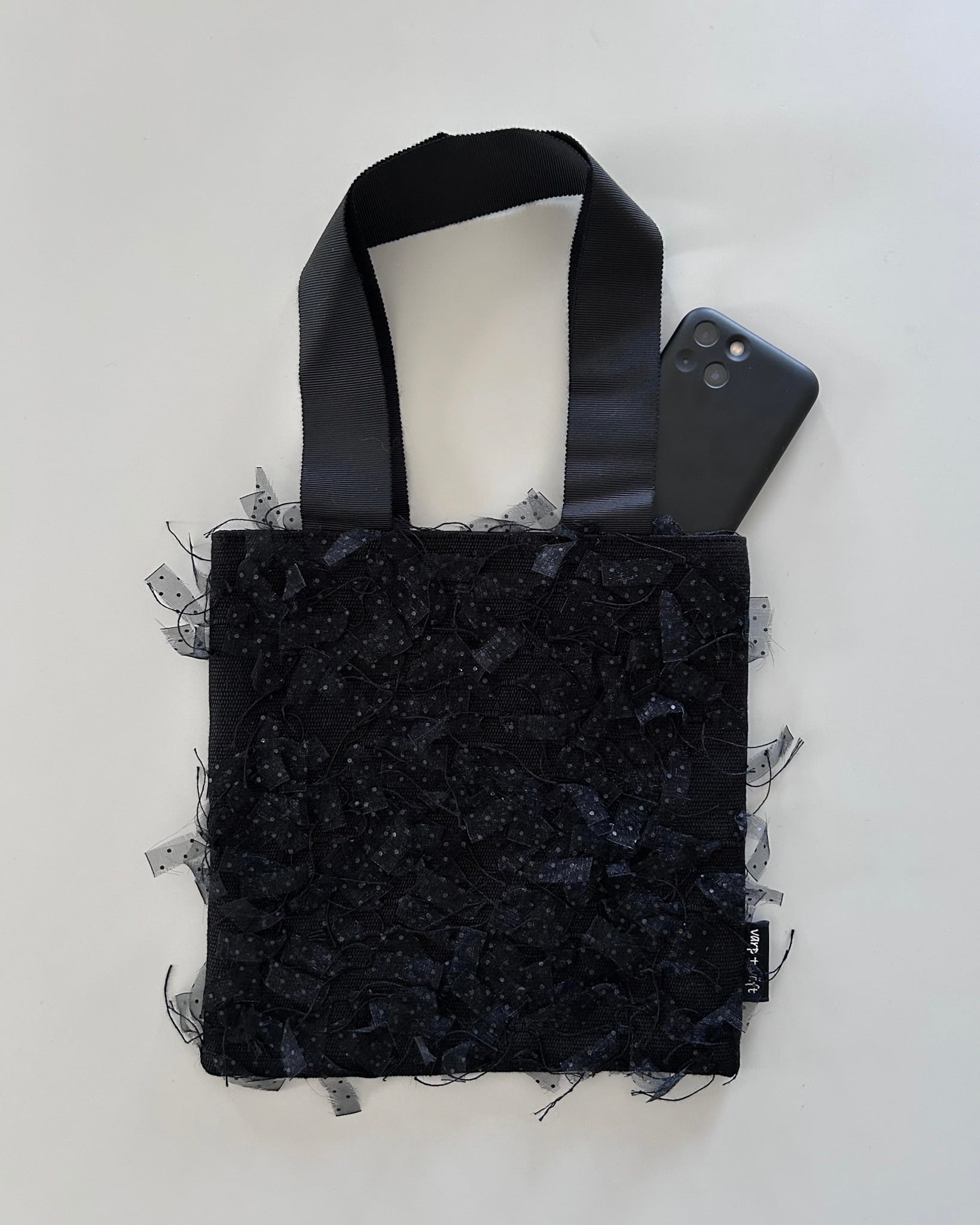 kvadratväska mini -black ribbon-