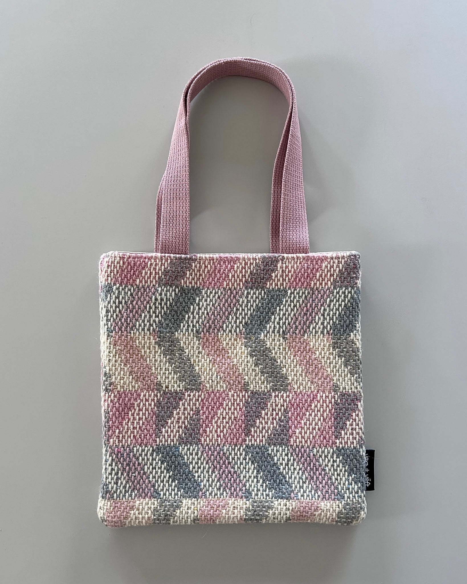 ピンク、グレー、ホワイトの色が織りの中で静かに切り替わるデザインです。