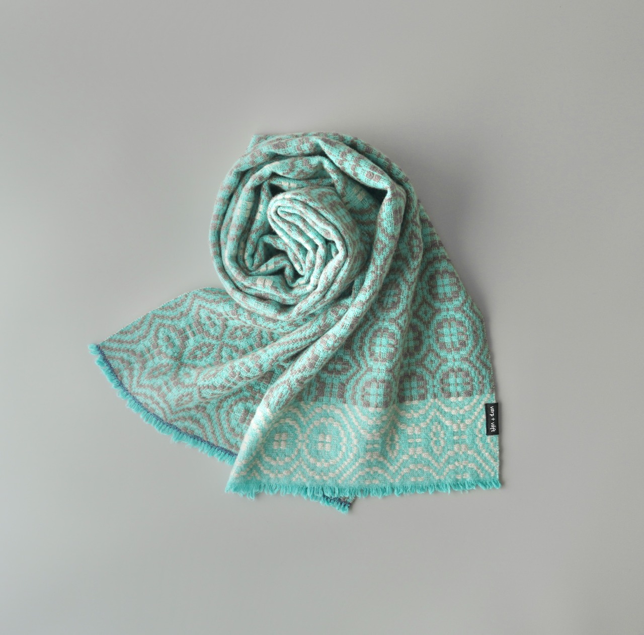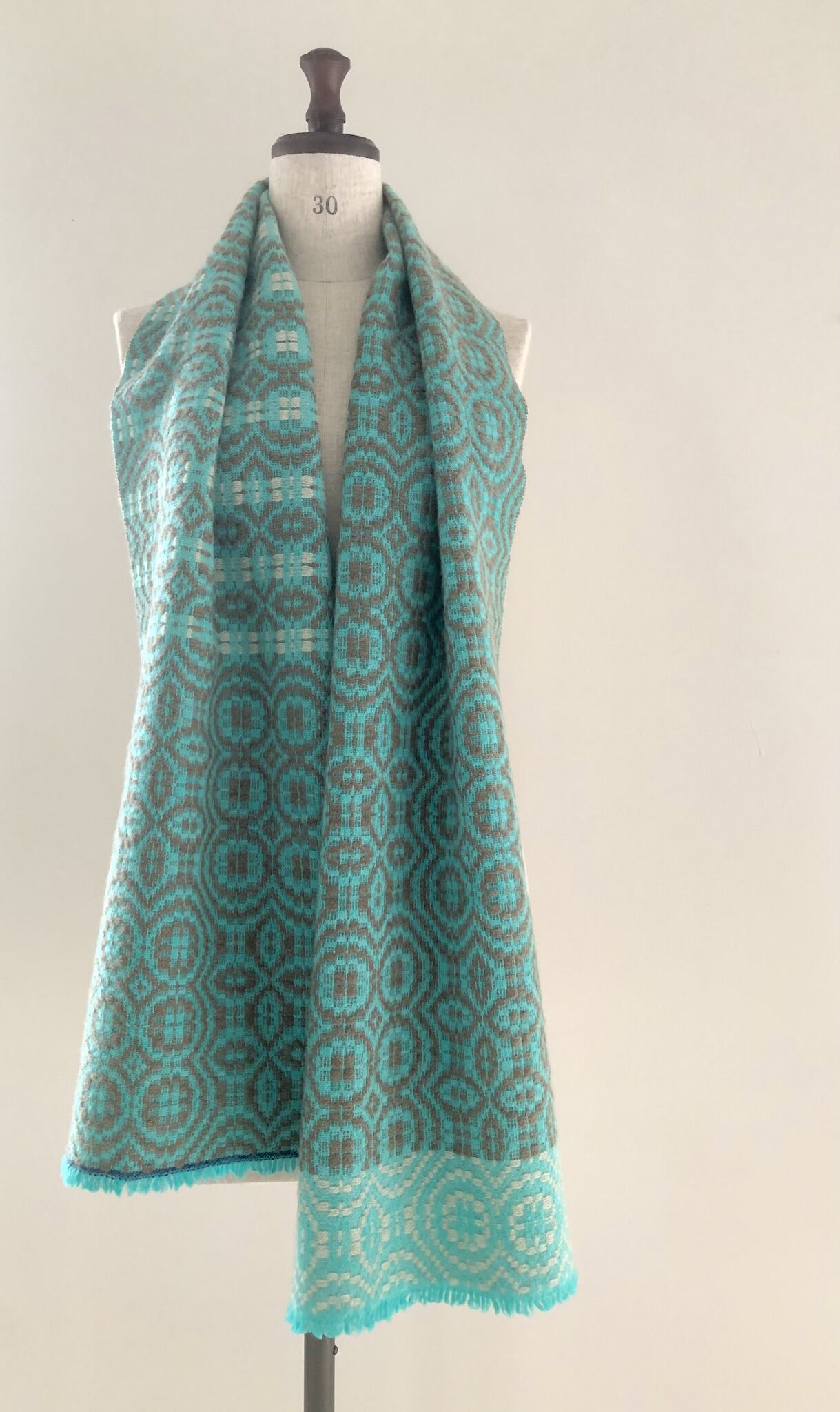 柔らかなカシミヤとウールを贅沢に使った「overshot2024 -blue series-」は、オーバーショット織の温かみある図案が特徴的なマフラーです。肌に優しい風合いと心地よいボリューム感があります。寒い季節の毎日を温かく心地よく包み込みます。