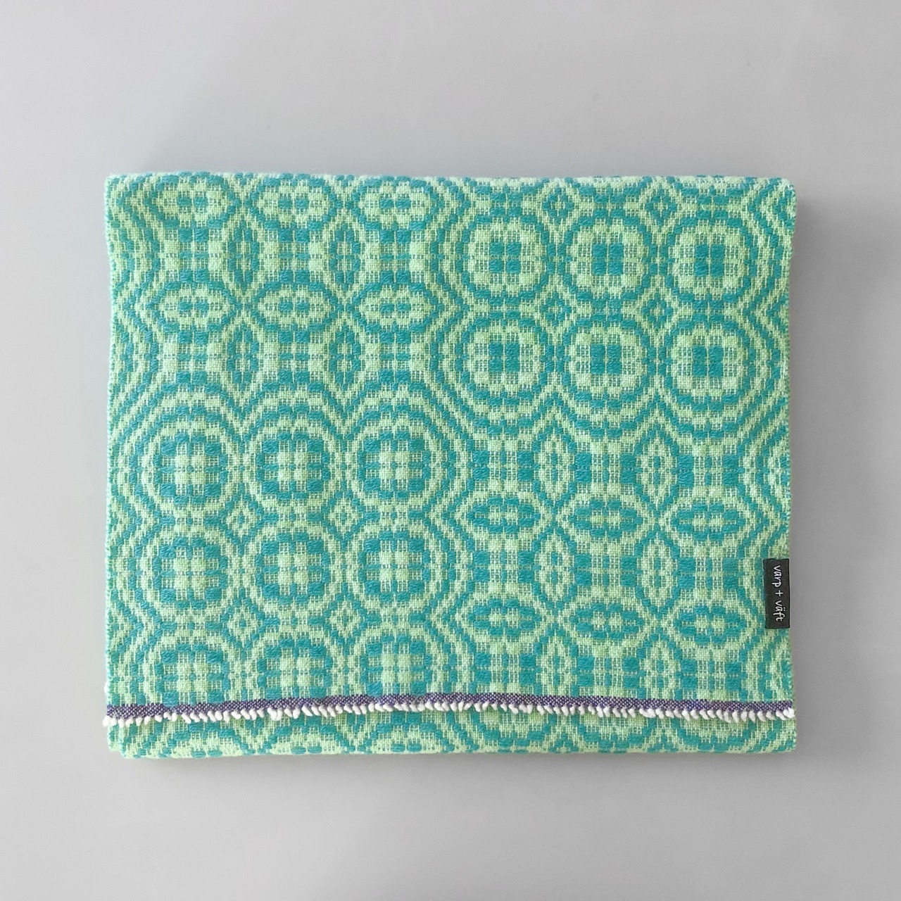 柔らかなカシミヤとウールを贅沢に使った「overshot2024 -blue series-」は、オーバーショット織の温かみある図案が特徴的なマフラーです。肌に優しい風合いと心地よいボリューム感があります。寒い季節の毎日を温かく心地よく包み込みます。